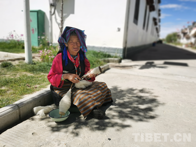 坐在自家門前樹(shù)下的尼瑪老奶奶,一邊黏線,見(jiàn)著我們高興地說(shuō)?!白园徇w到這兒,住房生活環(huán)境太好了,去哪兒哪兒都方便,孩子們?cè)谧约议T口就找到了工作,和以前相比生活好得太多了?!?/p>