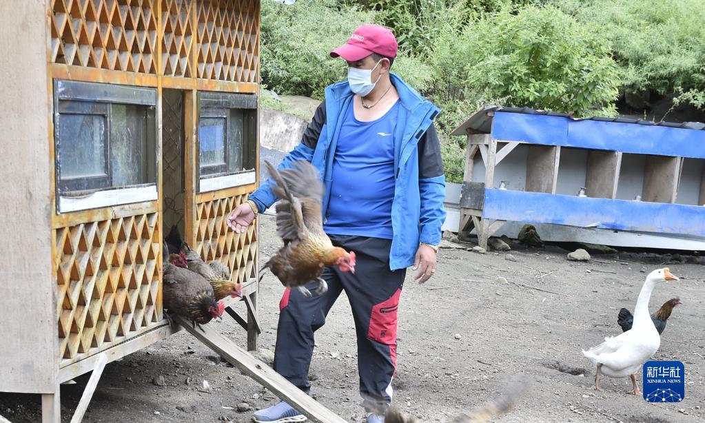 9月15日,西藏定結縣陳塘鎮(zhèn)養(yǎng)雞場負責人拉巴塔杰在放養(yǎng)藏雞。新華社發(fā)(索朗羅布 攝)