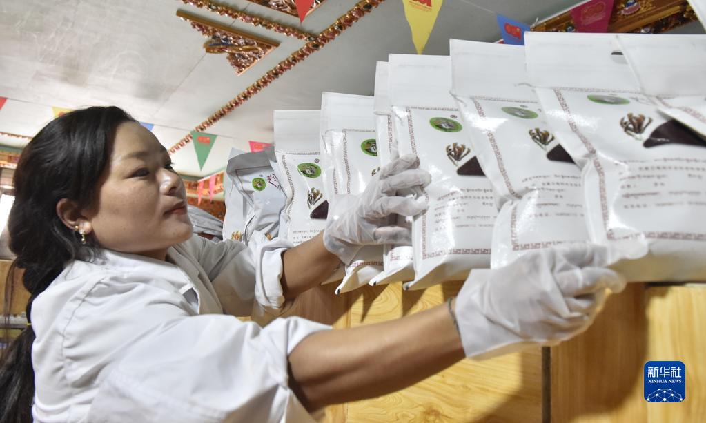 9月15日,西藏定結縣陳塘鎮(zhèn)居民久松在打包雞爪谷糌粑。新華社發(fā)(索朗羅布 攝)