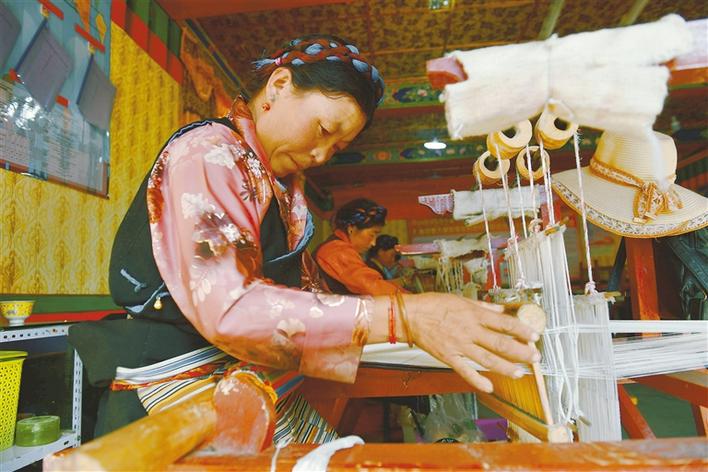 西藏日喀則仁布縣德吉林鎮(zhèn)強欽村德旦康薩農(nóng)牧民合作社是一家從事民族手工編織的專業(yè)合作社,主要生產(chǎn)卡墊、毛毯、藏裝等產(chǎn)品,現(xiàn)有員工150余名。近年來,在當?shù)卣膸椭龀窒拢献魃缦群蠼M織農(nóng)牧民進行技能培訓10次,培訓人數(shù)超過210人,通過培訓提升了合作社員工的技術(shù)能力,幫助當?shù)剞r(nóng)牧民群眾實現(xiàn)了就近就便就業(yè)的愿望。