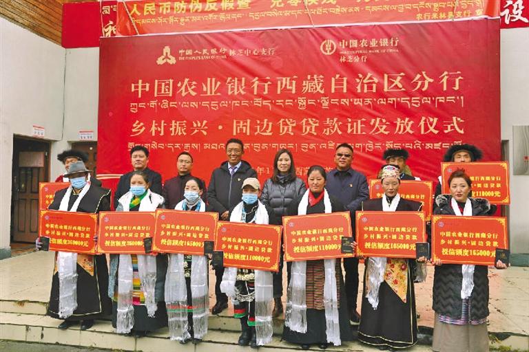近日,人行林芝市中心支行與農(nóng)行林芝市分行在米林縣南伊村舉行“鄉(xiāng)村振興·固邊貸貸款證發(fā)放儀式”,為該村45戶農(nóng)牧民群眾發(fā)放“鄉(xiāng)村振興·固邊貸”貸款證,共授信709萬(wàn)元。