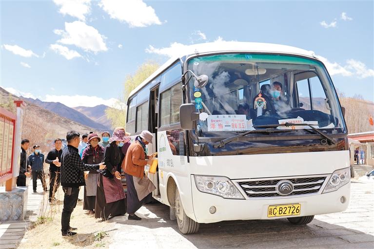 圖為山南市瓊結(jié)縣定時(shí)發(fā)車的農(nóng)村客運(yùn)班車,讓群眾出行更方便更安全。