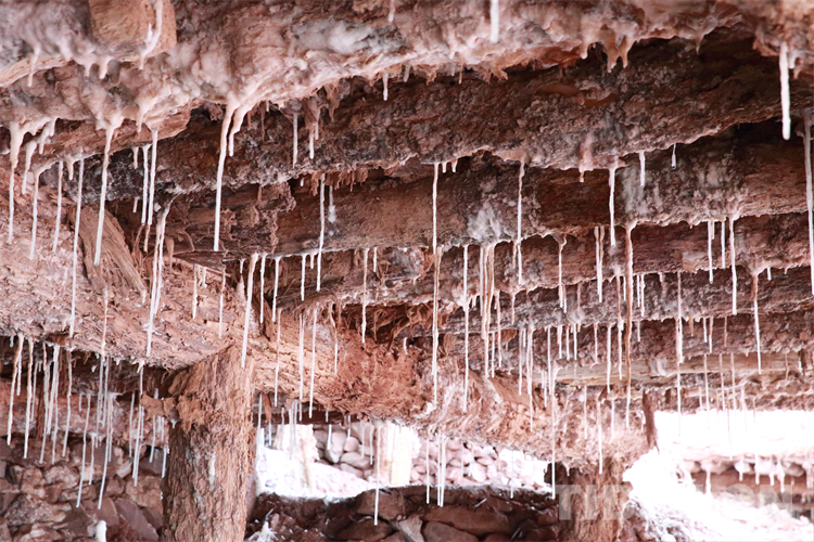 圖為鹽田房內頂部到處懸掛的鐘乳晶鹽 陳衛(wèi)國 攝