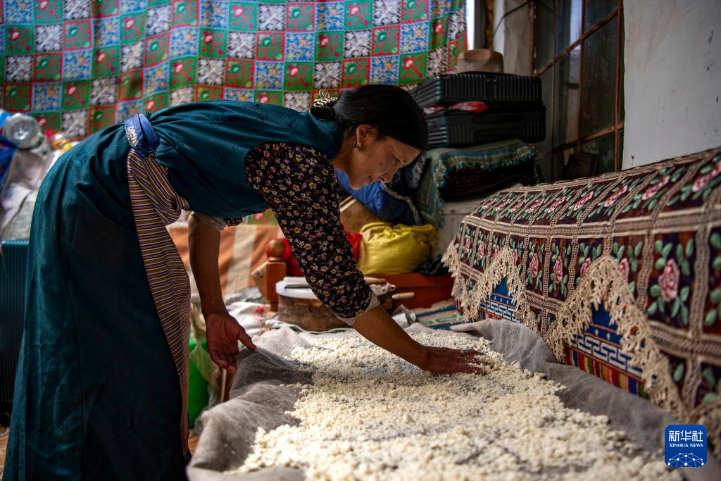 多爾格村村民達娃在家里制作奶渣(7月11日攝)。新華社記者 姜帆 攝