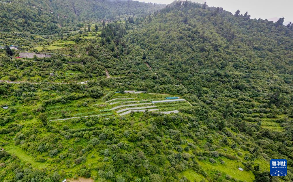 這是錯(cuò)那市貢日門巴民族鄉(xiāng)斯木村的莓茶種植試驗(yàn)田(無人機(jī)照片,7月28日攝)。新華社記者 旦增尼瑪曲珠 攝