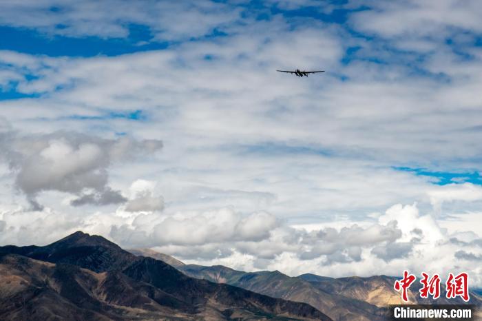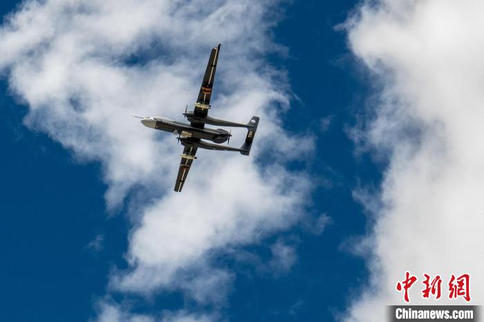 圖為“及時雨”大型無人機在高原飛行,進行人工增雨(雪)科學(xué)試驗。張歆平 攝