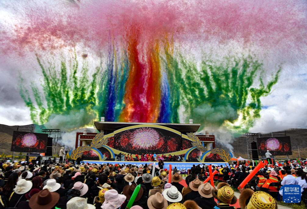 當(dāng)日,2023年西藏山南中國農(nóng)民豐收節(jié)暨隆子縣玉珞文化旅游節(jié)開幕式在隆子縣舉行。當(dāng)?shù)匚乃嚬ぷ髡邽楝F(xiàn)場數(shù)千名農(nóng)牧民觀眾獻(xiàn)上精彩演出,共慶豐收,歌頌家鄉(xiāng)。