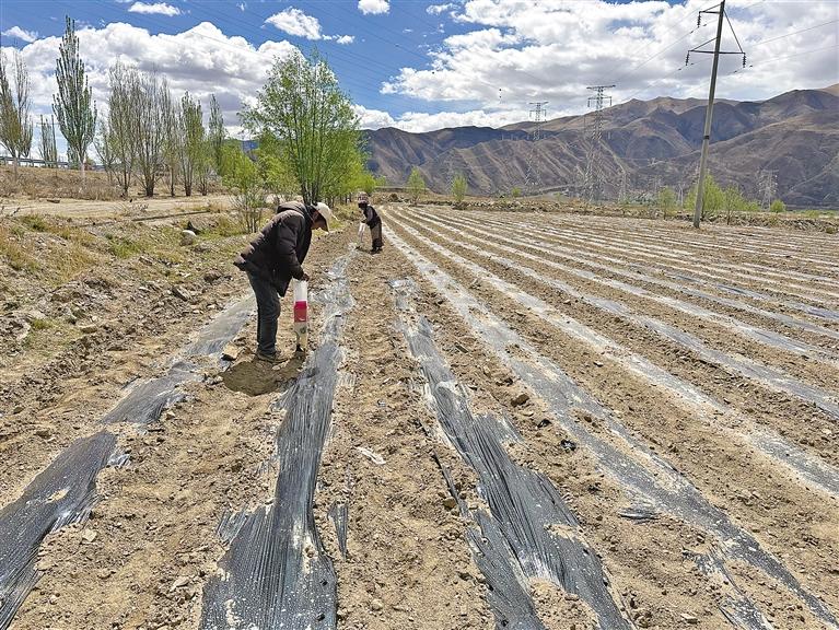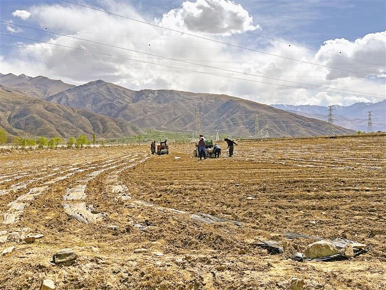 回憶起剛開荒時的情形,洛珠達(dá)瓦說:“我們每天組織公司全體職工和村民30多人,以及多臺挖掘機、破石機、拖拉機等機械設(shè)備,連續(xù)工作了1個多月。地底石頭較多,機械設(shè)備用壞了好幾臺。即使對土地進(jìn)行了多次翻耕,但土地沙化依然嚴(yán)重,無法種植莊稼?!?/p>