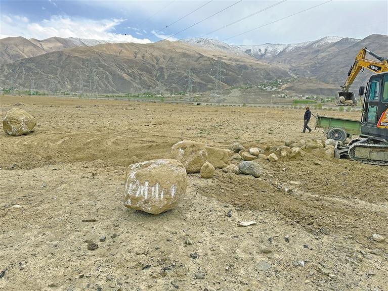 洛珠達(dá)瓦打開手機中的相冊,他指著挖石頭的視頻說:“雅魯藏布江沿岸土地中的石頭太多了,有些石頭重達(dá)幾噸,根本無法種植任何農(nóng)作物。為了撿石頭、挖石頭,我們每天從村里雇10多個人來干活?!?/p>