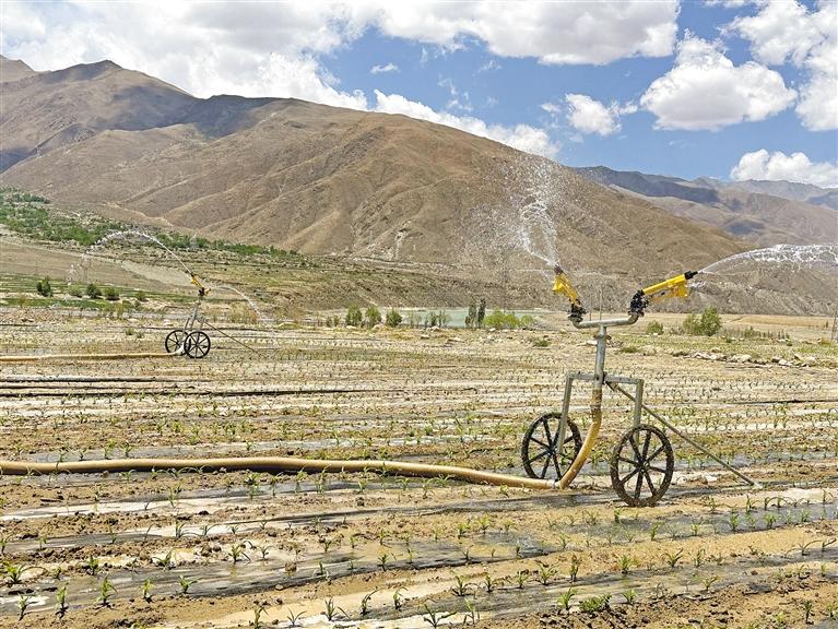 次仁頓珠是西藏曲水藏禾農(nóng)業(yè)綜合開發(fā)有限公司的一名工作人員。他說,剛開始澆灌土地時,他們直接從雅魯藏布江抽水,不過到了雨季,抽水泵都被大水沖走了,他們不得不另想辦法,從村中的地下機井抽水到溝渠,直接將水引到田間地頭。