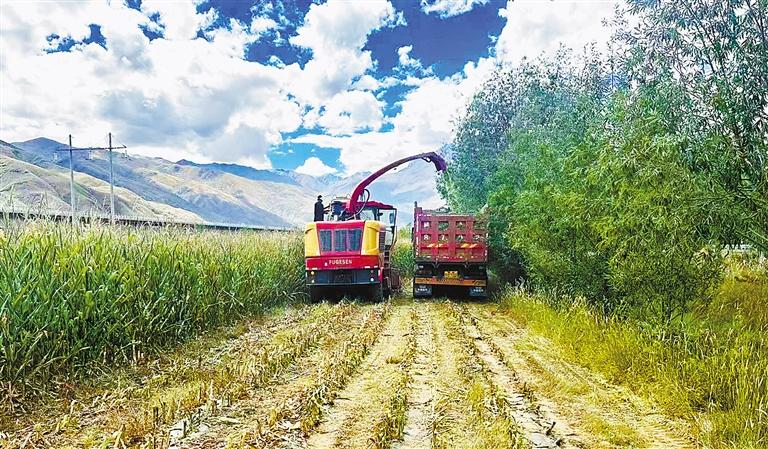 走在雅魯藏布江沿岸,成片的玉米地呈現(xiàn)眼前,讓人意想不到的是,半年前這里還是一片荒地?!拔覀兘衲攴N植玉米850多畝,其中,600多畝的玉米長勢良好,預(yù)計每畝可收玉米飼草2噸以上?!甭逯檫_(dá)瓦說。目前,玉米秸稈已陸續(xù)開始收割。