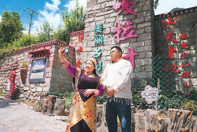 村民巴珍家的藏式小樓,院內(nèi)鮮花簇簇、室內(nèi)溫暖如春,二樓的3個(gè)房間租給旅游企業(yè)用作客房?!耙荒攴孔馐杖胗?萬多元,我在旅游公司打工,月工資4000多元,一年收入七八萬元,關(guān)鍵是工作生活都在自己村里,簡(jiǎn)直是太方便了?!卑驼浜軡M意現(xiàn)在的生活。旦增達(dá)杰介紹,光房屋租金一項(xiàng),村民戶均年增收3萬多元。