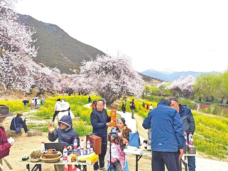 游客在“次仁的家藏式體驗館”區(qū)域拍照打卡集章。林芝市職業(yè)技術學校學生在嘎拉村直播,宣傳推介桃花旅游文化節(jié)、工布民俗風情及農(nóng)特產(chǎn)品等。[詳細] -