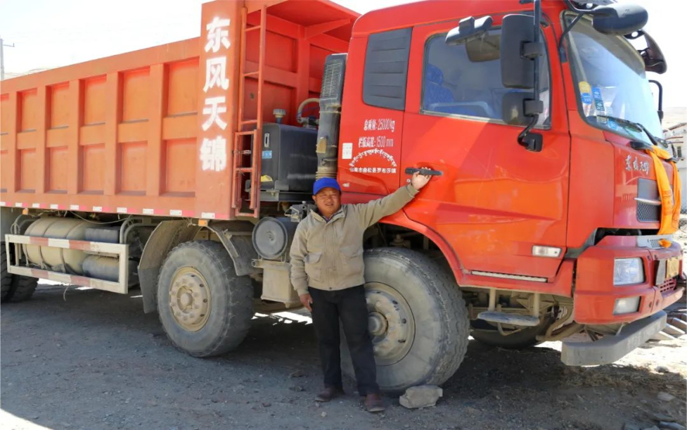 圖為運輸車隊司機次旦多吉和他的貨車。