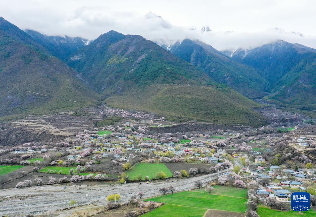 4月2日拍攝的林芝市波密縣傾多鎮(zhèn)(無人機照片)。新華社記者 丁汀 攝