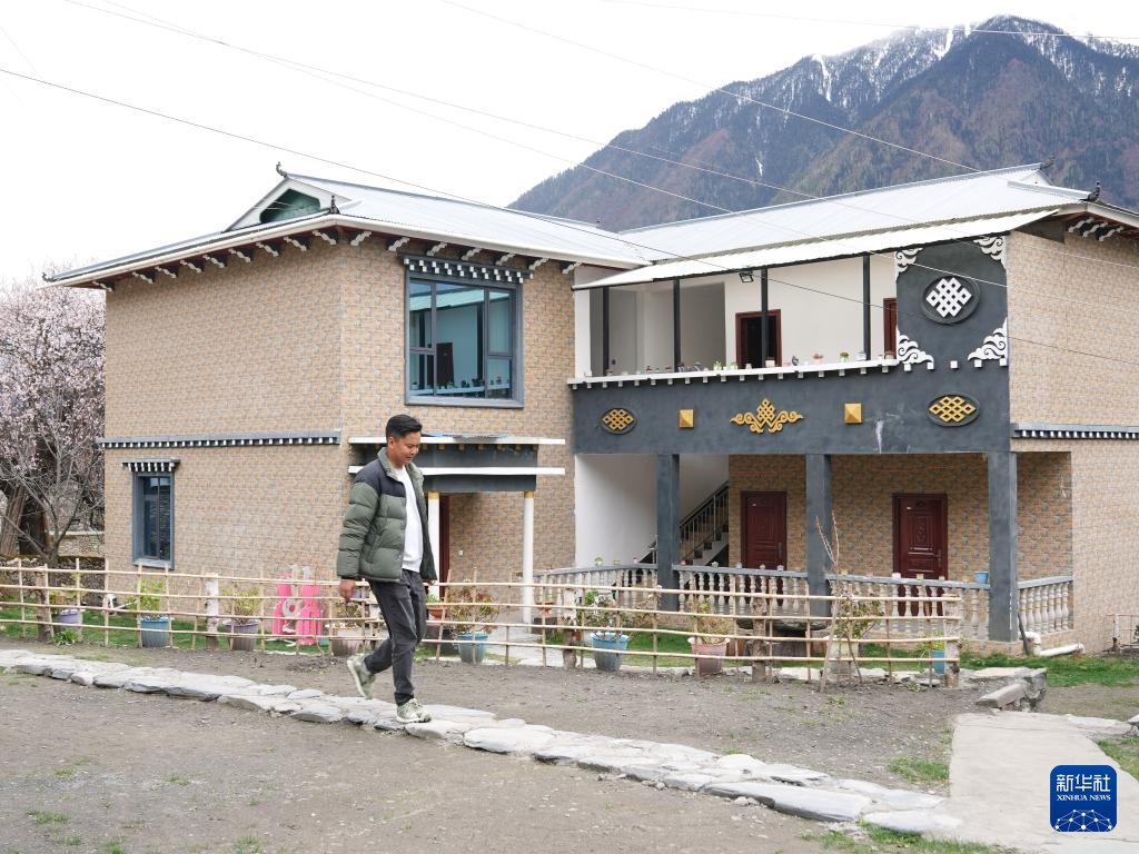 洛松頓珠從自家民宿前經過(4月2日攝)。新華社記者 丁汀 攝