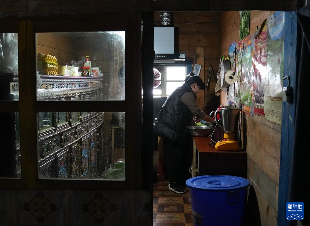 洛松頓珠的母親次吉在廚房內為旅客準備晚餐(4月2日攝)。新華社記者 丁汀 攝