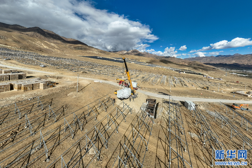 在建設(shè)中的110千伏協(xié)合措美縣20(MW)并網(wǎng)光伏電站項(xiàng)目(無人機(jī)照片)。新華網(wǎng) 旦增努布 攝