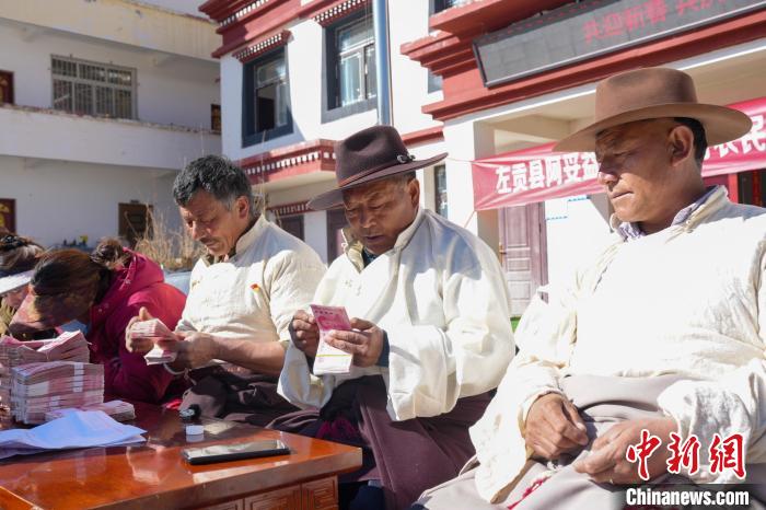 圖為西藏左貢縣亞中村農(nóng)牧民分紅現(xiàn)場。普布朗杰 攝