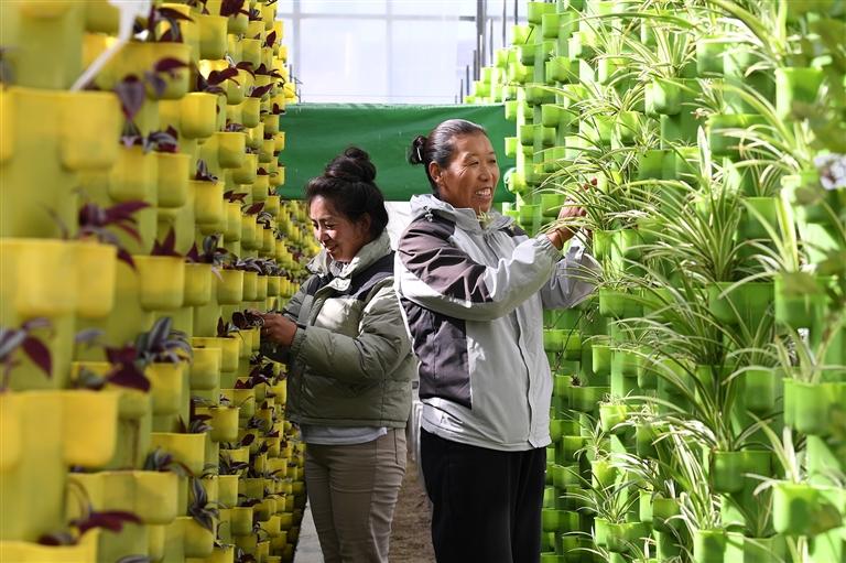 圖為拉薩市才納國家現(xiàn)代農(nóng)業(yè)示范園區(qū)的工作人員正在育苗。西藏日報(bào)記者 洛桑 攝