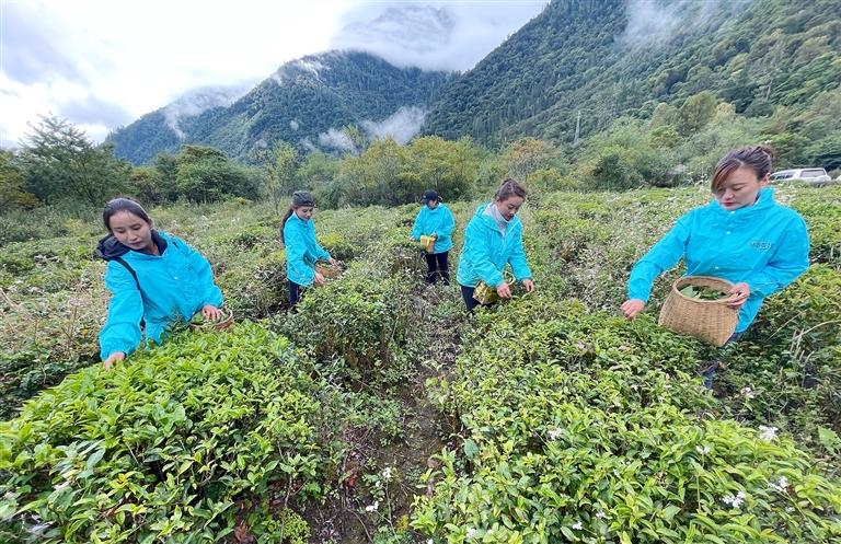圖為林芝市易貢茶場的員工正在茶田間采茶。西藏日報(bào)記者 白瑪澤旺 攝