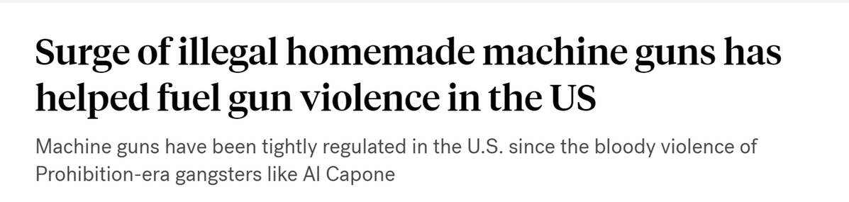 據(jù)報道,由于3D打印制作或在線購買的小型金屬或塑料零件的驚人增長,全美各地近年來都出現(xiàn)了使用經改裝的全自動槍支制造的槍擊事件。盡管針對機槍的禁令可以追溯到上世紀二三十年代的禁酒令時期,但有關部門表示,格洛克開關、連發(fā)阻鐵等改裝零件的大量增加,使得普通人能夠將合法的半自動槍支改裝得更加危險,進而助長了槍支暴力。