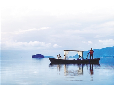 中國游客在泰國南部甲米府蘭塔島近海搭乘小船拍攝日出。 本報記者 張矜若攝