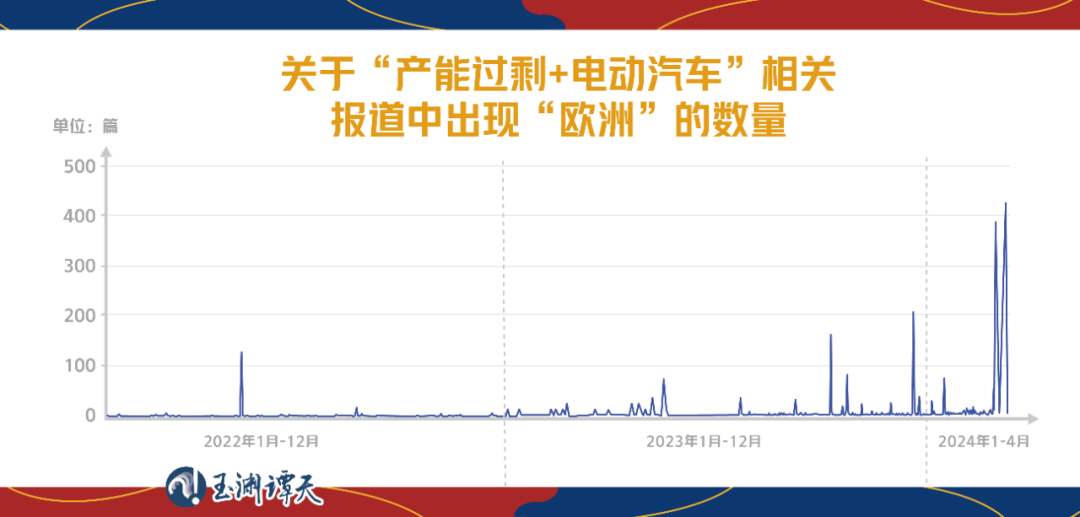 為了拆解美方的敘事套路,我們又定向?qū)λ^中國(guó)“產(chǎn)能過剩論”的報(bào)道中有關(guān)“新能源汽車”報(bào)道的趨勢(shì)變化進(jìn)行了分析。