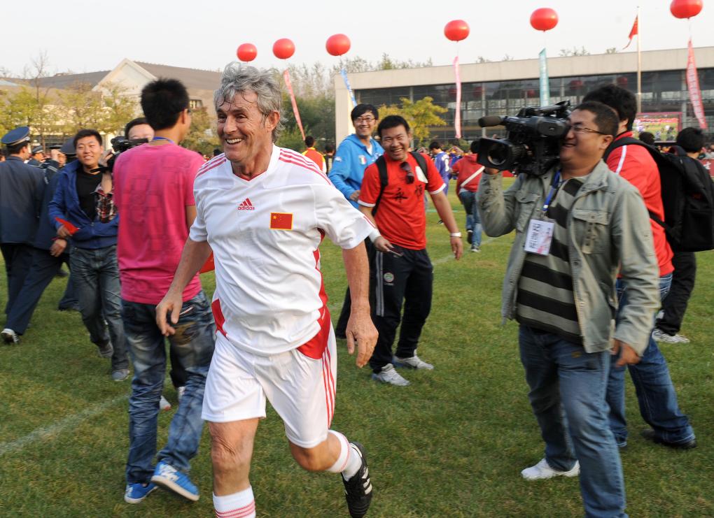 2011年10月7日,前中國(guó)國(guó)家男子足球隊(duì)主教練米盧故地重游,在沈陽(yáng)和他當(dāng)年的“戰(zhàn)友”、弟子共同慶祝中國(guó)足球隊(duì)世界杯出線十周年。2001年10月7日,米盧率領(lǐng)中國(guó)國(guó)家隊(duì)在沈陽(yáng)五里河體育場(chǎng)以1比0戰(zhàn)勝阿曼隊(duì),提前兩輪獲得韓日世界杯入場(chǎng)券,圓了中國(guó)足球44年的世界杯夢(mèng)想。新華社記者李鋼攝
