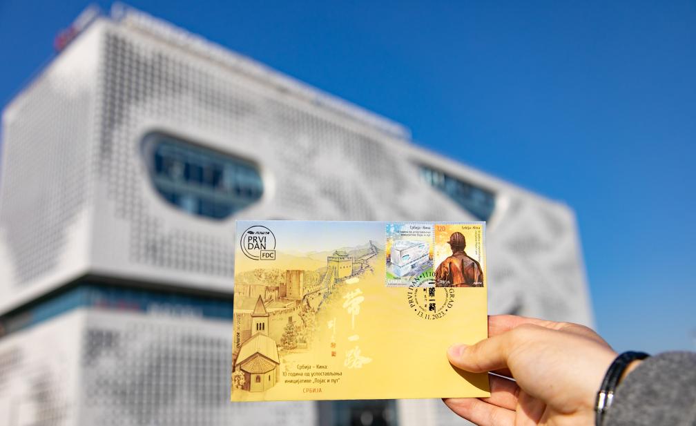 2023年12月28日,塞爾維亞郵政局在貝爾格萊德中國(guó)文化中心發(fā)行兩套中國(guó)主題郵票,紀(jì)念“一帶一路”倡議提出十周年,同時(shí)展示中國(guó)的文化與自然遺產(chǎn)。圖為當(dāng)天在貝爾格萊德拍攝的中國(guó)主題郵票。新華社發(fā)(王韡攝)