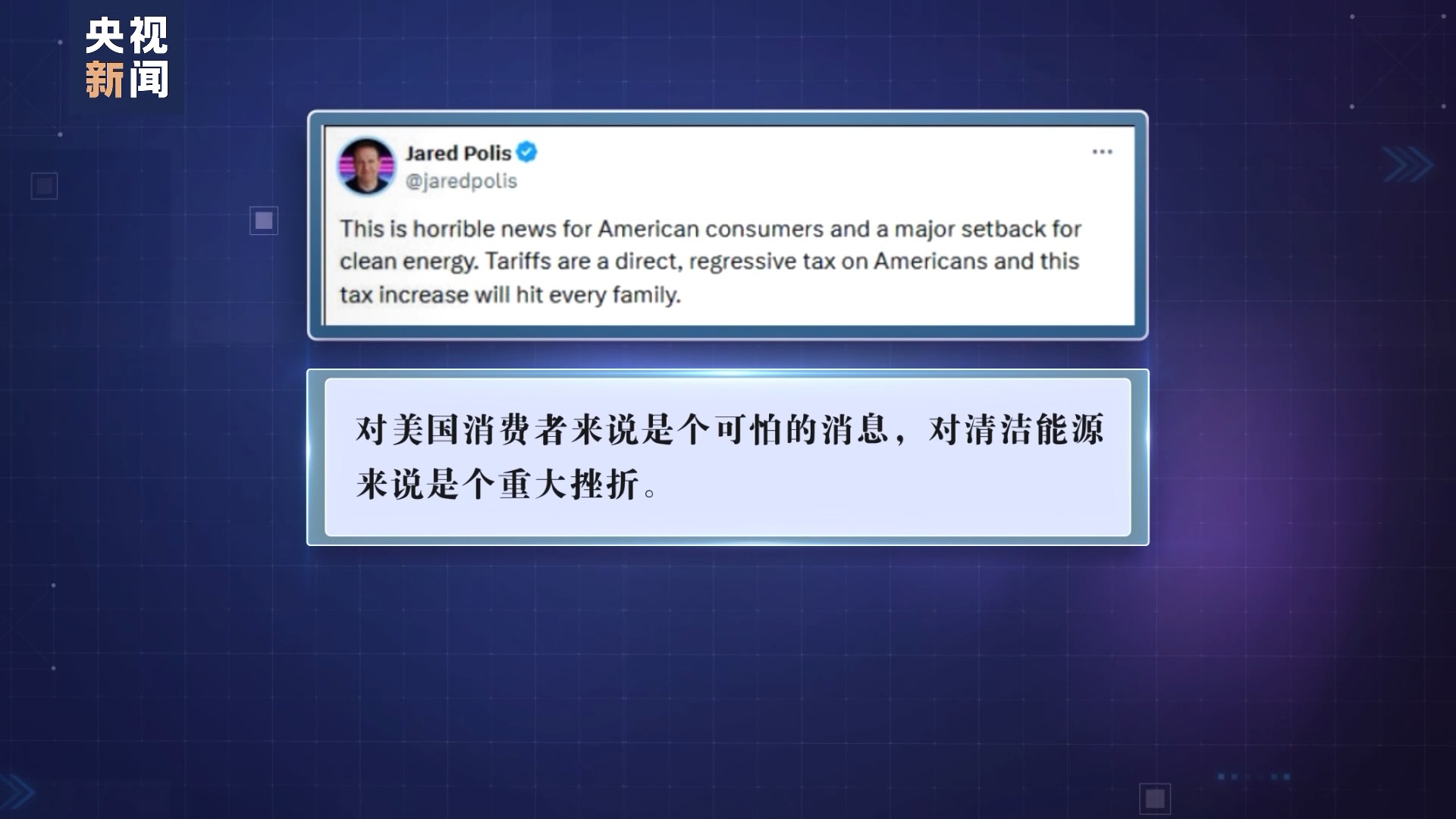 科羅拉多州民主黨籍州長賈里德·波利斯也在社交媒體平臺(tái)發(fā)帖寫道,此舉“對美國消費(fèi)者來說是個(gè)可怕的消息,對清潔能源來說是個(gè)重大挫折”。