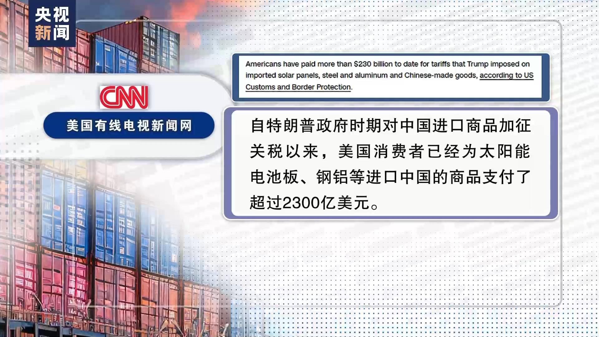 事實(shí)證明,美國保護(hù)主義措施無一例外只是“回旋鏢”式的自傷游戲。據(jù)美國有線電視新聞網(wǎng)3月引用美國海關(guān)及邊境保護(hù)局?jǐn)?shù)據(jù),自特朗普政府時(shí)期對中國進(jìn)口商品加征關(guān)稅以來,美國消費(fèi)者已經(jīng)為太陽能電池板、鋼鋁等進(jìn)口中國的商品支付了超過2300億美元。
