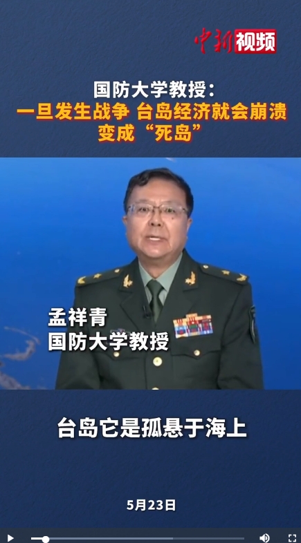 國防大學(xué)教授:一旦發(fā)生戰(zhàn)爭,臺(tái)島經(jīng)濟(jì)將瞬間崩潰,變成“死島”。本次演習(xí)直搗援助臺(tái)島的外部通道。
