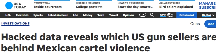 據(jù)《今日美國報》網(wǎng)站(USA Today)日前報道,此前墨西哥軍方情報遭到大規(guī)模泄露,其中涉及二十年來首次曝光的與從邊境南部收繳的7.8萬支槍有關的信息,包括與之相關的美國槍支商店、走私者以及販運槍支的類型。