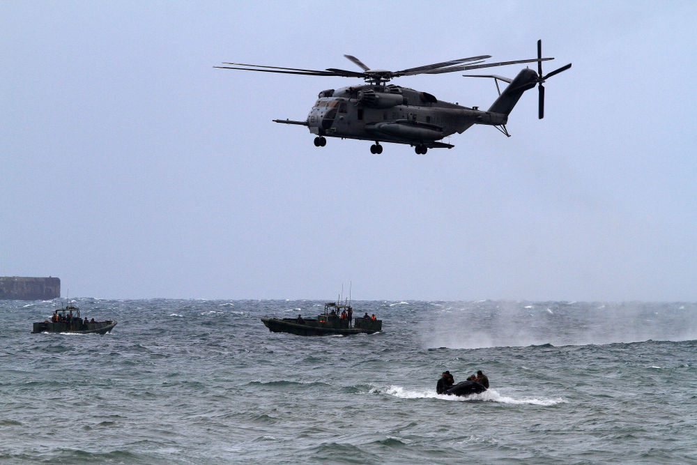 2013年9月20日,在菲律賓甲米地省,一架美軍CH-53E軍用直升機(jī)運(yùn)載美國和菲律賓士兵參加演習(xí)。新華社發(fā)(魯埃勒·烏馬利攝)