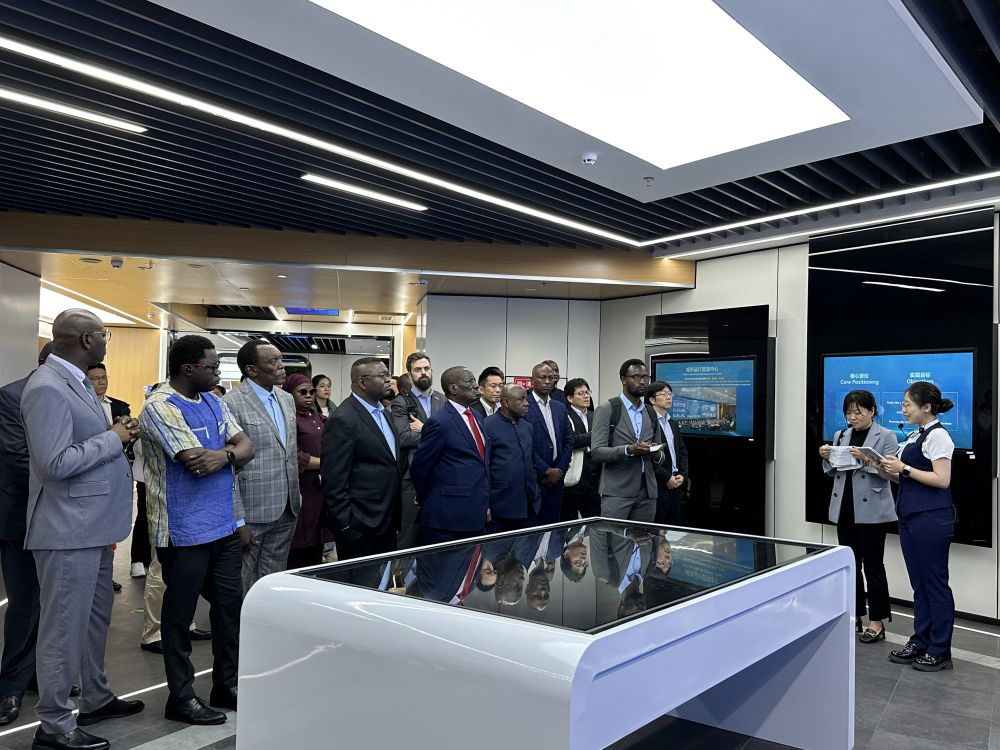 尼日利亞駐上??傤I(lǐng)館商務(wù)專員穆哈穆德·哈桑一邊聽(tīng)著介紹,一邊拿出手機(jī)展示尼日利亞的一處地形,詢問(wèn)工程師對(duì)橋梁建設(shè)的建議以及橋梁養(yǎng)護(hù)經(jīng)驗(yàn)。
