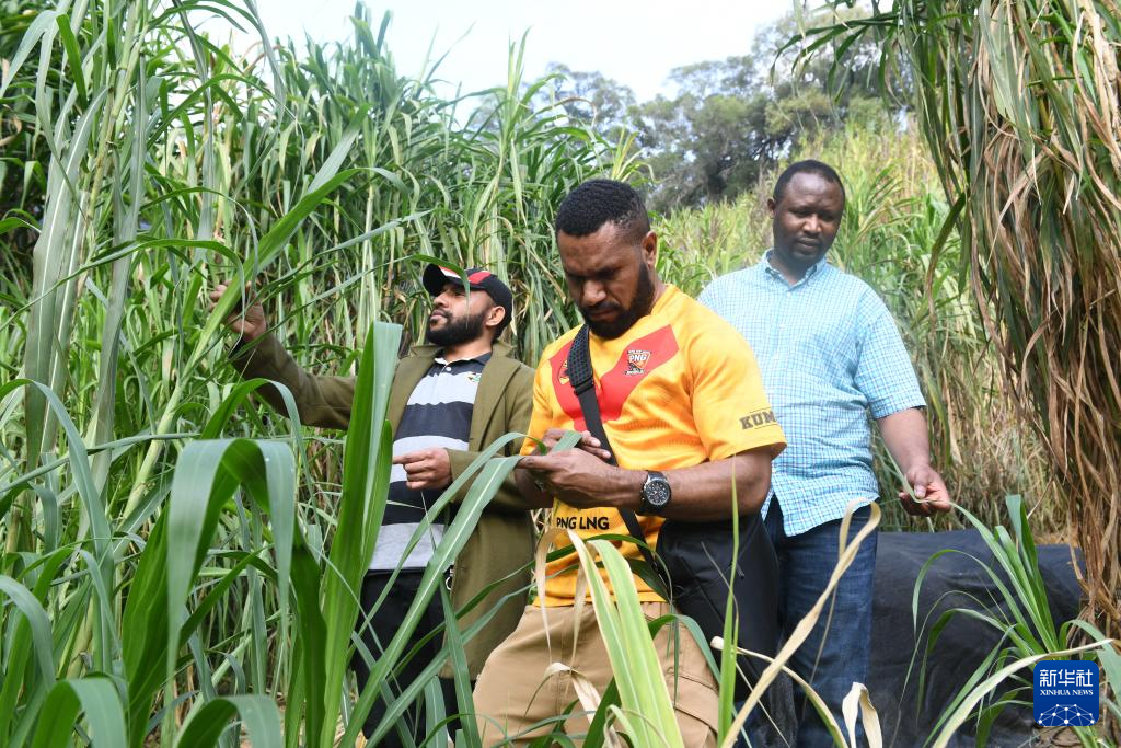 2024年3月28日,在位于福州的福建農(nóng)林大學(xué),來自盧旺達(dá)和巴布亞新幾內(nèi)亞的學(xué)生在“國(guó)際菌草苑”內(nèi)查看菌草長(zhǎng)勢(shì)。新華社記者 林善傳 攝