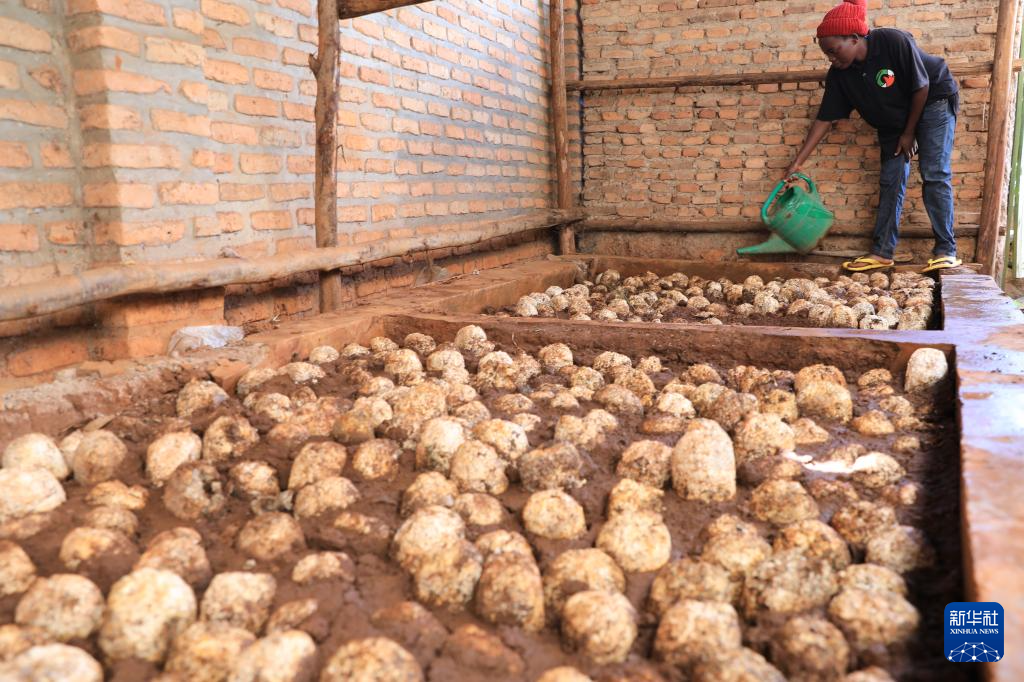 在盧旺達(dá)首都基加利,42歲的萊昂尼達(dá)斯·穆希米伊馬納經(jīng)營(yíng)著當(dāng)?shù)匾?guī)模最大的食用菌培育工坊。他曾前往中國(guó)參加菌草技術(shù)培訓(xùn),回國(guó)后成立了這家工坊。
