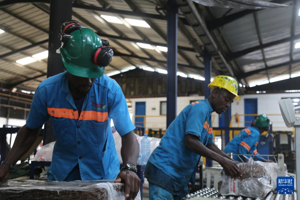 2024年6月10日,在科特迪瓦南部城鎮(zhèn)達(dá)布郊區(qū),工人們?cè)诿捞m橡膠加工廠對(duì)成品橡膠進(jìn)行打包。新華社記者 張健 攝