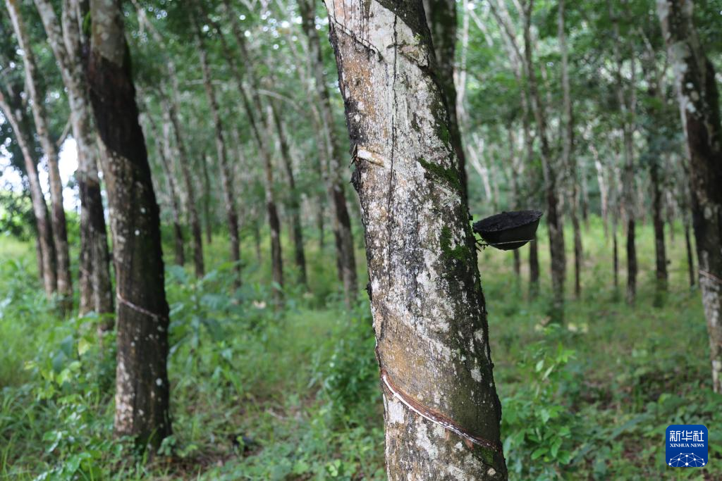 這是2024年6月10日拍攝的位于科特迪瓦南部城鎮(zhèn)達(dá)布郊區(qū)的三葉橡膠樹林。新華社記者 張健 攝