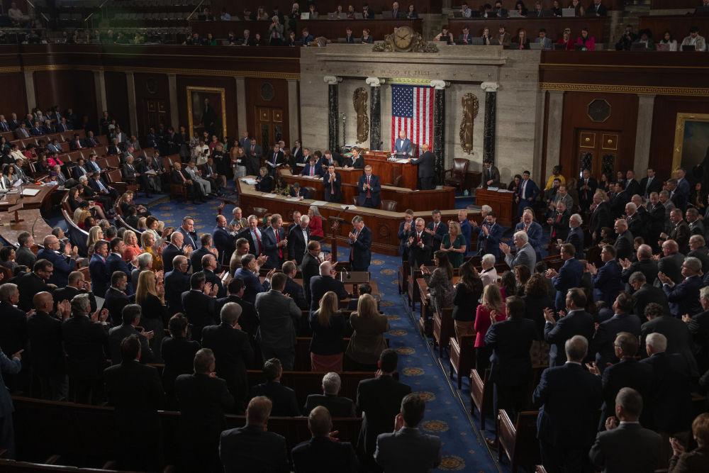 2023年10月25日,美國(guó)國(guó)會(huì)眾議院25日進(jìn)行議長(zhǎng)選舉第四輪投票,來(lái)自路易斯安那州的共和黨保守派聯(lián)邦眾議員邁克·約翰遜當(dāng)選議長(zhǎng)。新華社發(fā)(亞倫攝)