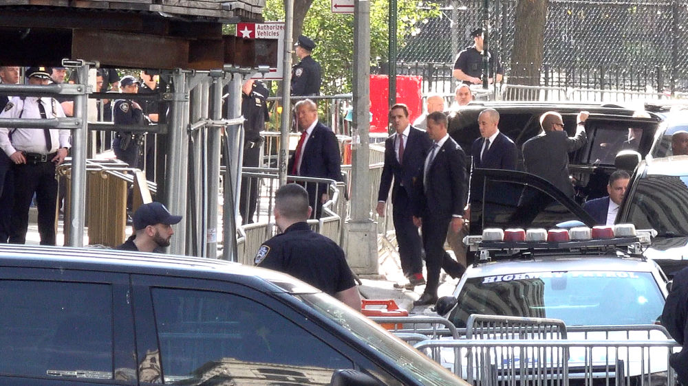 這張4月15日的視頻截圖顯示,美國(guó)前總統(tǒng)特朗普抵達(dá)紐約曼哈頓一家刑事法院出庭,出席關(guān)于其在2016年涉嫌偽造商業(yè)記錄以掩蓋向一名女演員支付“封口費(fèi)”一案的審理。新華社記者丁曄攝