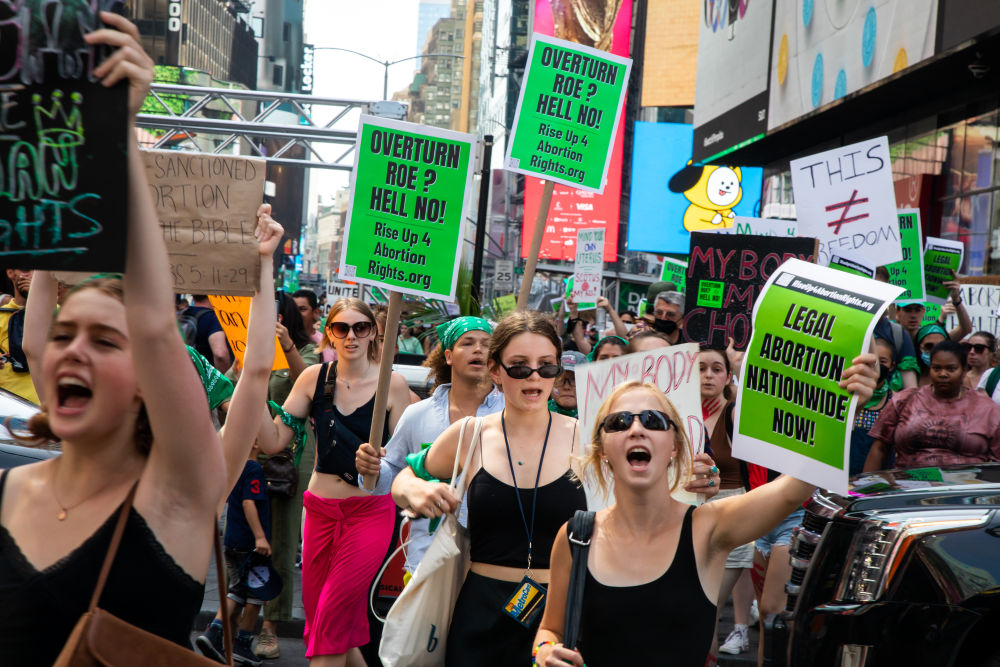 2022年7月4日,墮胎權(quán)支持者在美國(guó)紐約舉行示威游行。美國(guó)聯(lián)邦最高法院6月24日推翻近半個(gè)世紀(jì)前在聯(lián)邦層面確立墮胎權(quán)的判例“羅訴韋德案”,取消對(duì)女性墮胎權(quán)的憲法保護(hù),引發(fā)廣泛爭(zhēng)議。新華社發(fā)(郭克攝)
