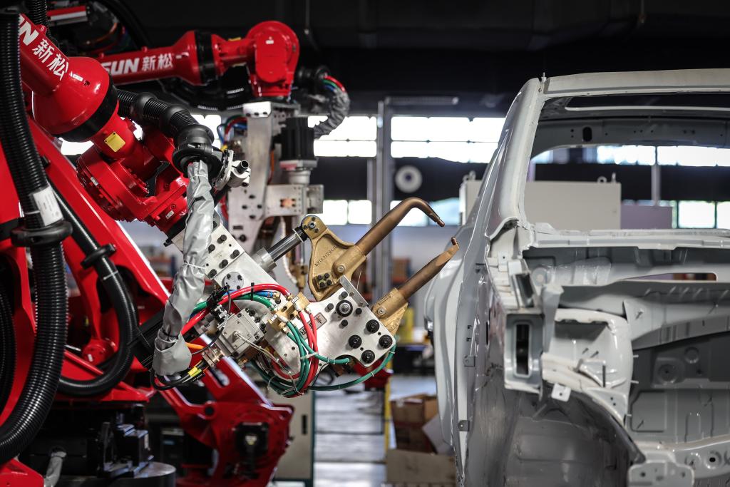 這是6月3日拍攝的點焊機器人。機器人被廣泛應用于產(chǎn)業(yè)轉(zhuǎn)型升級的現(xiàn)實場景中,它們能夠勝任繁重、危險或復雜的工作,提高生產(chǎn)效率和經(jīng)濟效益。新華社記者潘昱龍攝