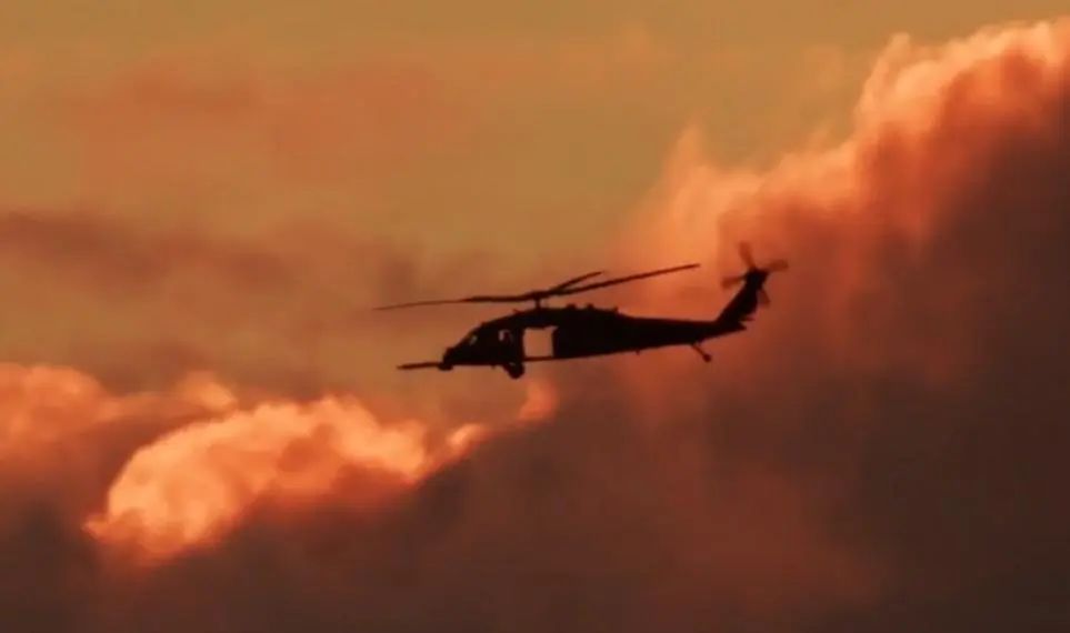 駐歐美軍直升機飛行在夕陽中。圖/《今日美國報》網(wǎng)站