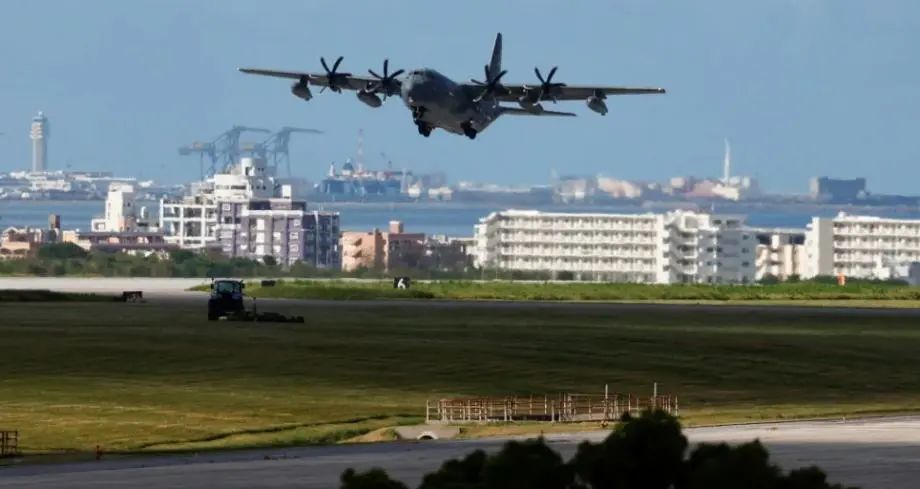 美軍運輸機從沖繩嘉手納基地起飛。圖/路透社