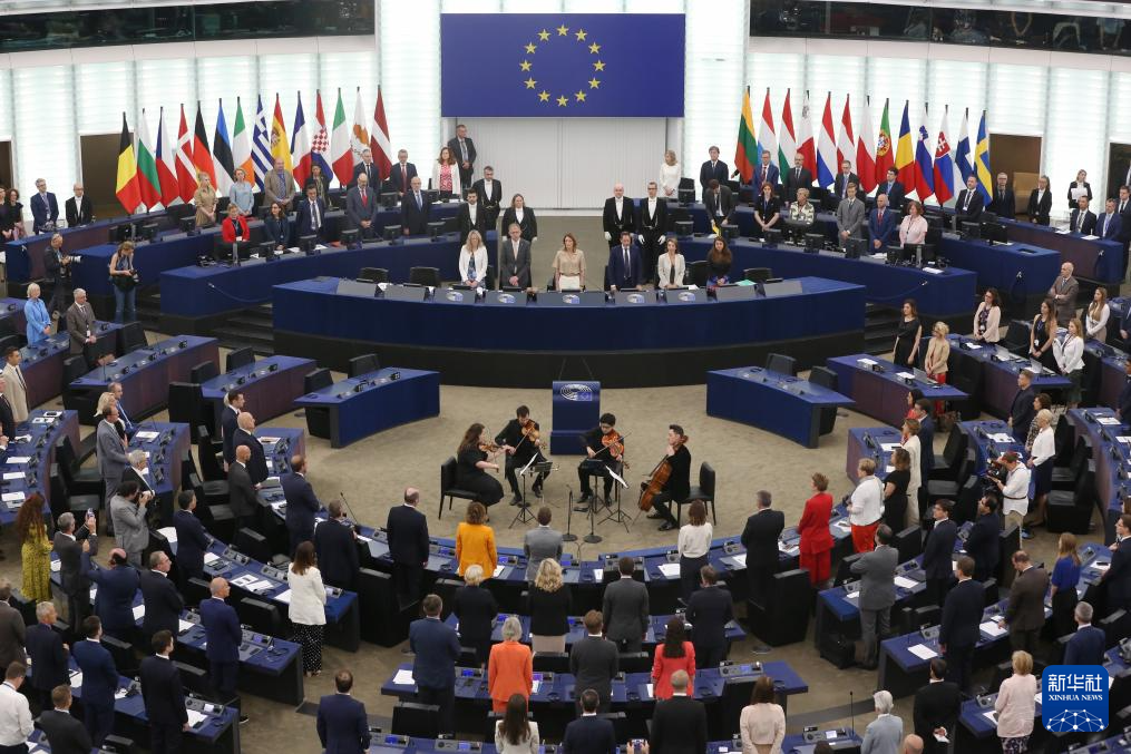 這是7月16日在法國斯特拉斯堡拍攝的新一屆歐洲議會第一次全體會議現(xiàn)場。歐洲議會16日在法國斯特拉斯堡召開全會,馬耳他籍的蘿伯塔·梅措拉經(jīng)投票再次當選歐洲議會議長。新華社記者 趙丁喆 攝