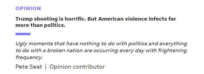 美國前白宮發(fā)言人、政治評論員皮特·西特(Pete Seat)日前在《今日美國報(bào)》(USA Today)網(wǎng)站刊文稱,特朗普在賓夕法尼亞州競選集會(huì)上遭“未遂刺殺”之后,盡管美國的政界人士、評論家還有普通民眾都在說這起事件是美國“破碎政治的一個(gè)跡象”,但這其實(shí)是“一個(gè)支離破碎的國家所體現(xiàn)出來的癥狀”。
