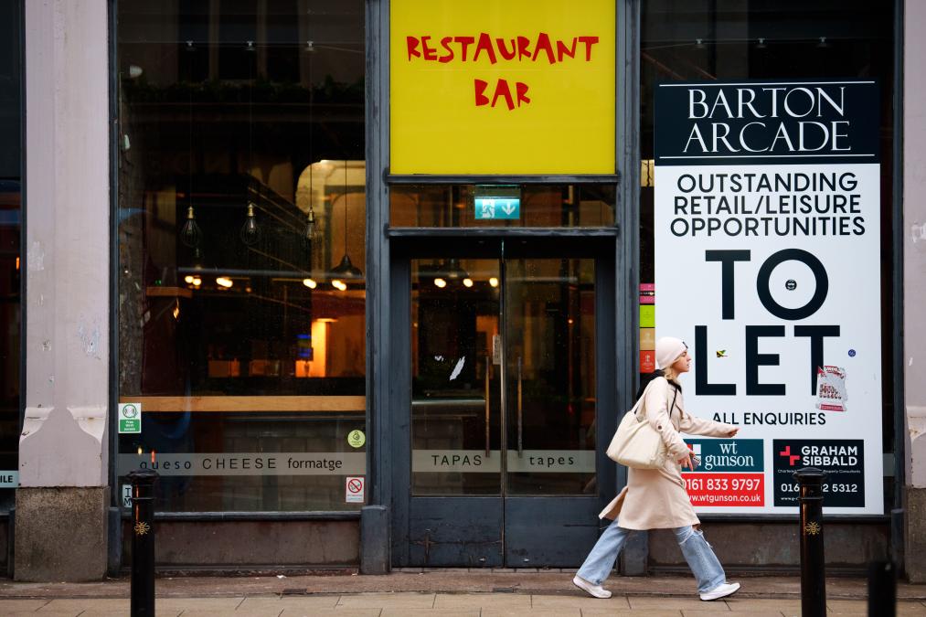 2023年11月22日,一名女子走過英國曼徹斯特一家關閉的餐廳。新華社發(fā)(喬恩·休珀攝)
