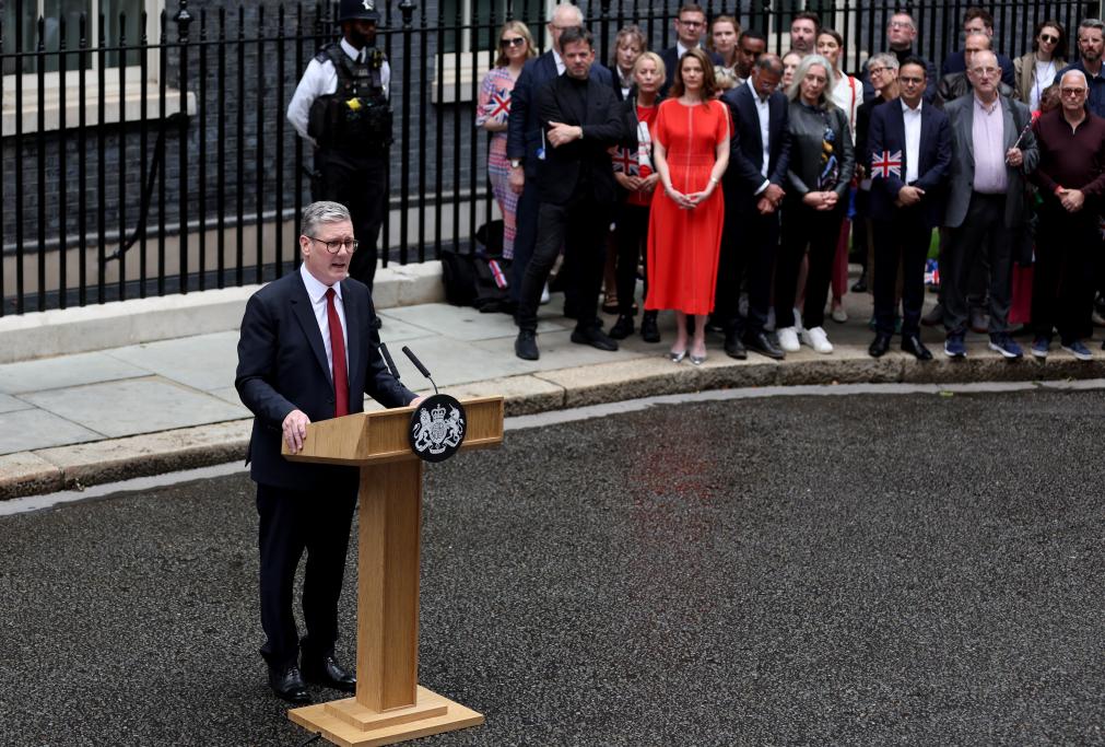 7月5日,基爾·斯塔默在英國倫敦唐寧街10號首相府前發(fā)表講話。新華社記者李穎攝
